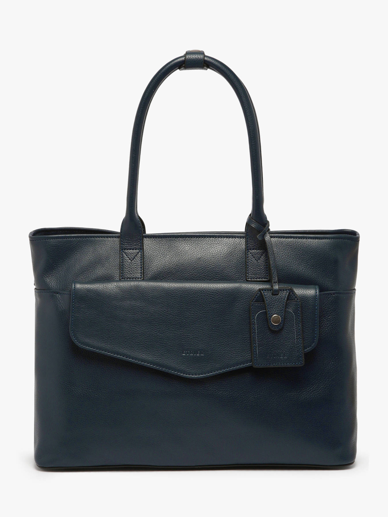 Ce porte document intemporel et élégant est le modèle dont vous ne vous lasserez pas. Embossé du logo Etrier, c'est un modèle discret, phare de notre collection Business. Il pourra accueilir tous vos documents ainsi qu'un PC 15"". Porté main, ses hanses s'attachent à l'aide d'une pression en cuir.